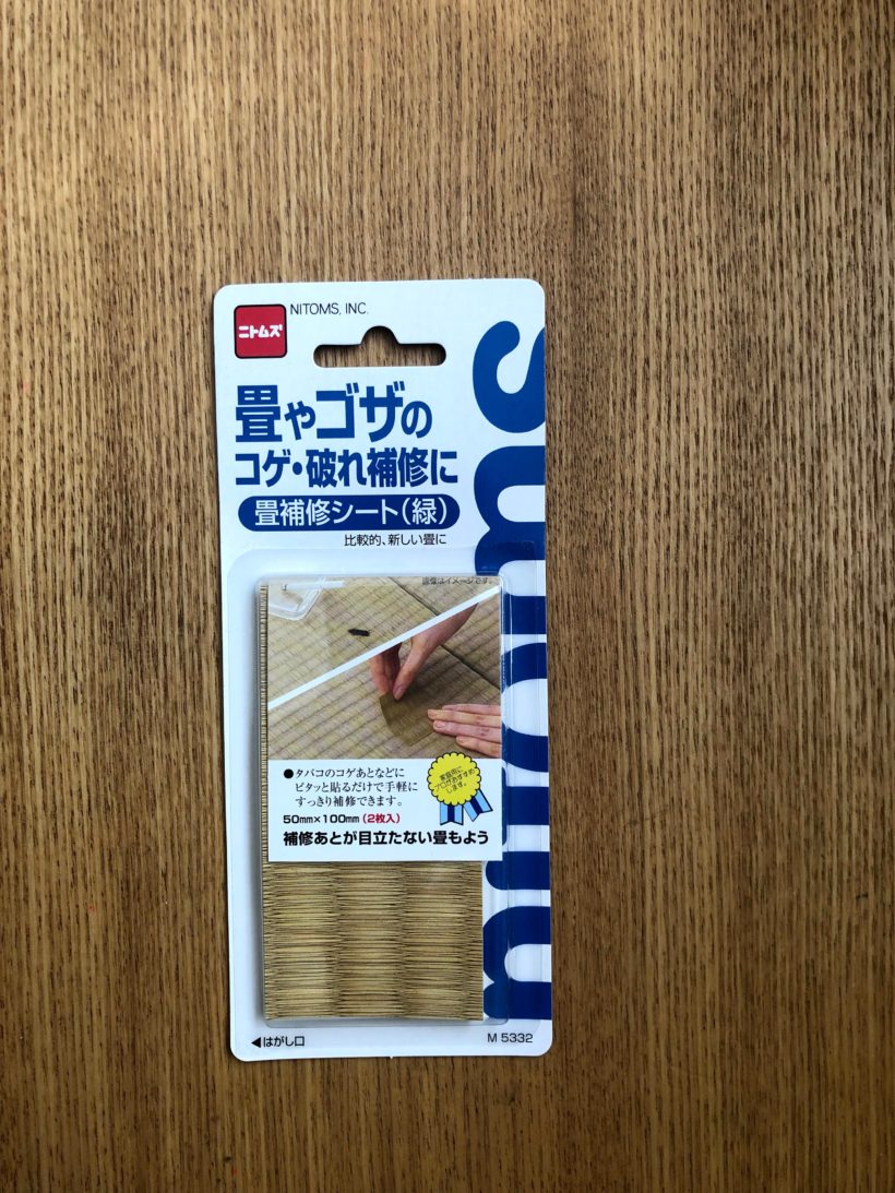 畳の焼けコゲや破れに貼ることで、補修できる接着シートです。