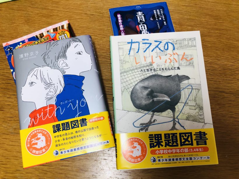 課題図書を買いに本屋さんへ行ってきました。ほかにもう一冊好きな本も・・・。