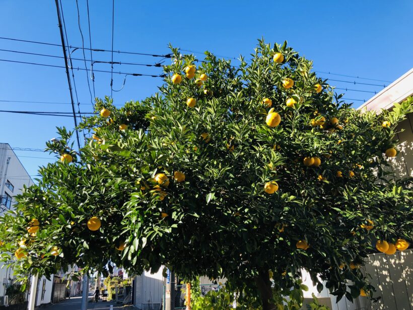 今の時期はみかん系は1本の木に多く実をつけてるのをよく見かけます。