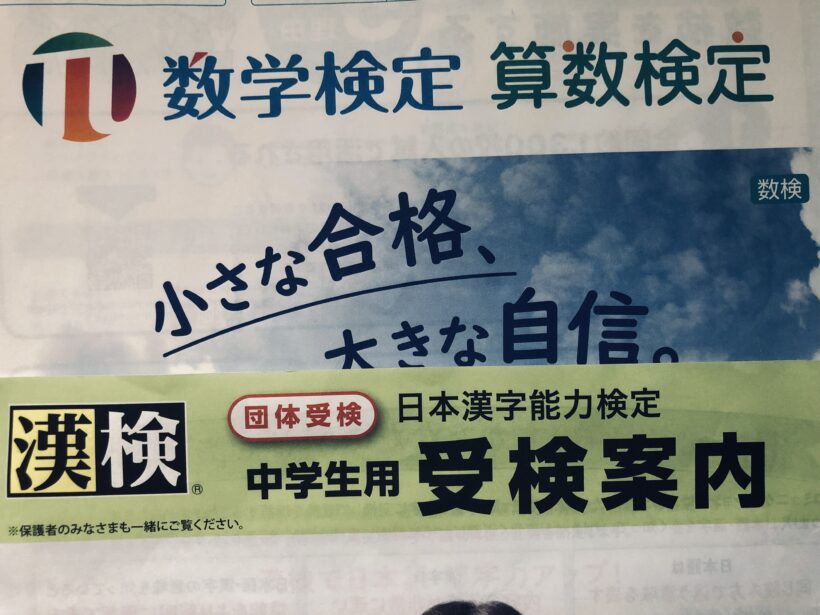 今時の中学生は漢字検定と英検と数学検定の3つを受けている中学生が多いようです。