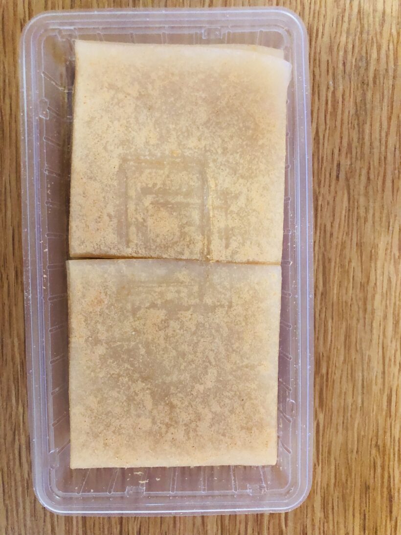 どんなものか楽しみに袋をあけてみたら八つ橋みたいなものが出てきました。