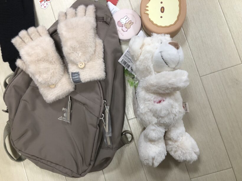 今回もリュックや手袋やぬいぐるみやクリスマスカードが宅配便で送られてきました。