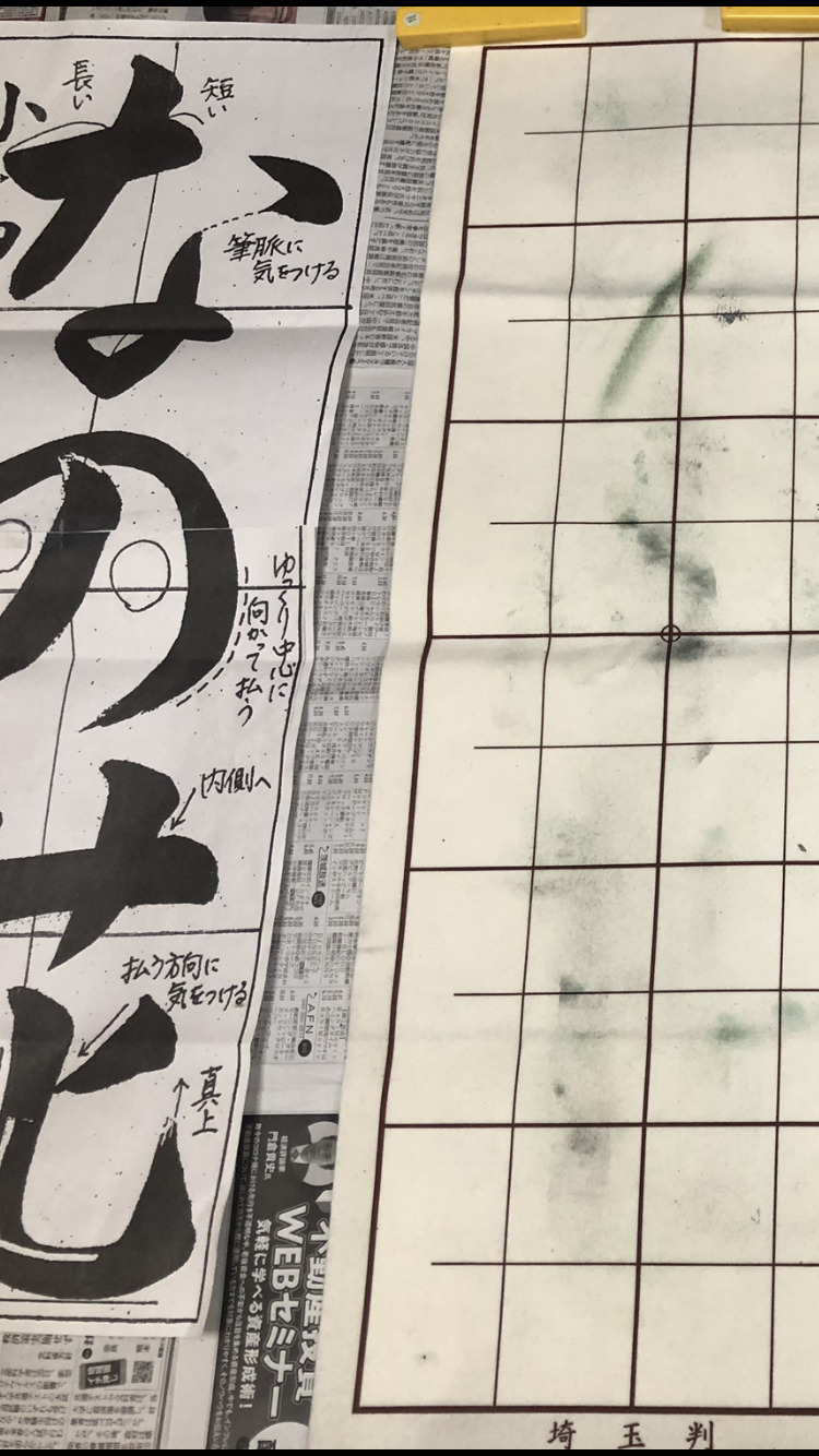 書き初め用紙は指定のものを使い、前もって多めに文具屋さんで買っておきます。