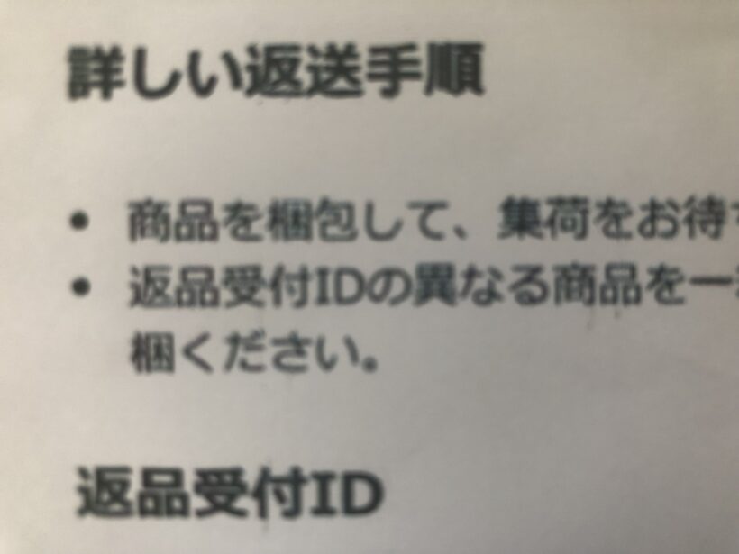 返却受付IDを取得して、購入したものを梱包してヤマトに渡すだけです。