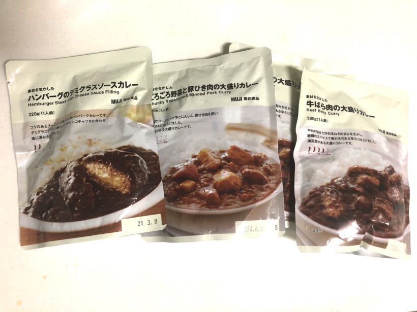 よく買うのは牛ばら肉の大盛りカレーとごろごろ野菜と挽き肉の大盛りカレーとハンバーグデミグラスソースカレーの3種類をよく買います。