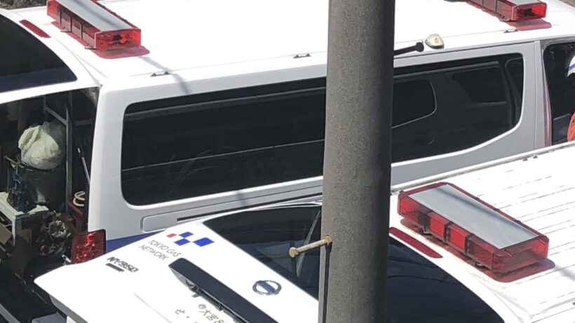 近くの水道管工事を各所でしていますが、道を塞いでガス会社のトラックが占領しているところがありました。
