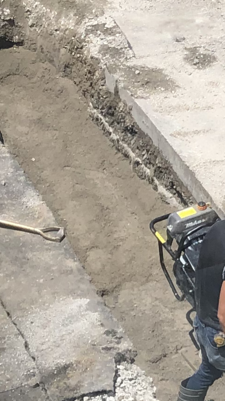 駐車場の水道管部分に穴を開けて、セメントは1日踏まないでということだったのですが、娘が踏んでしまいました。