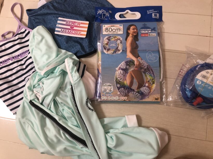 水着だけじゃなくうきわとビーチサンダルも小さくなっていたので買い換えました。
