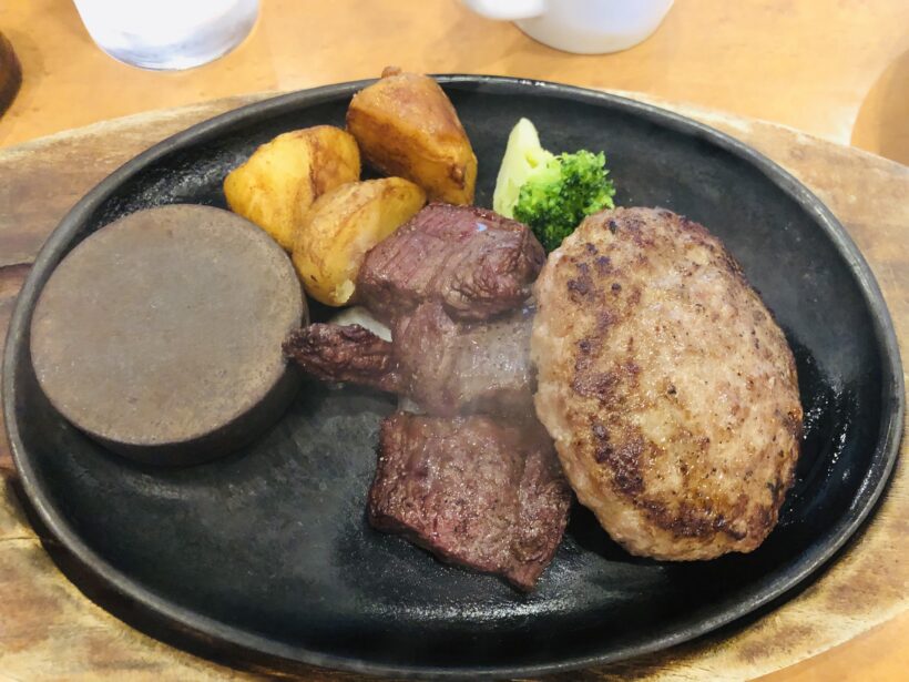 私はハラミとハンバーグのセットが好きで、オニオンソースをかけて食べています。