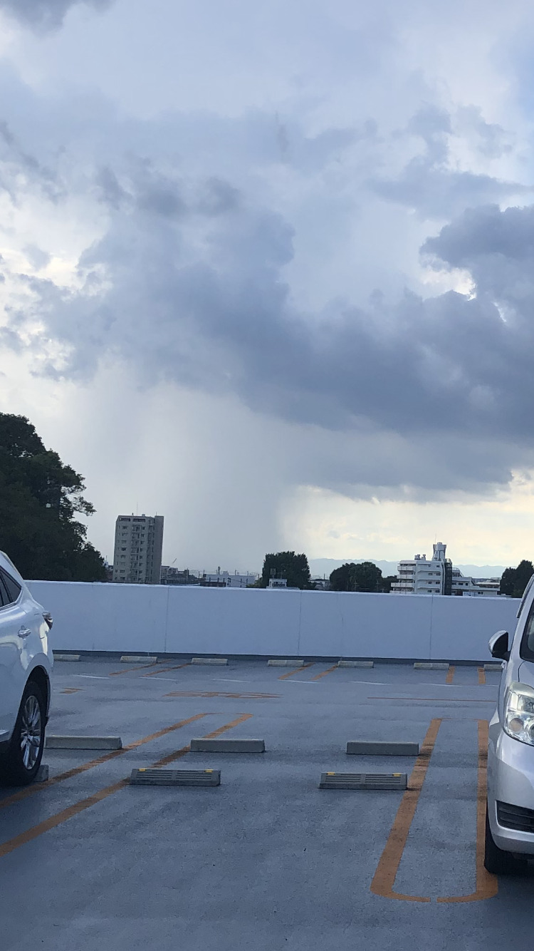 先日スーパーの屋上から遠くに雨柱を見つけました。