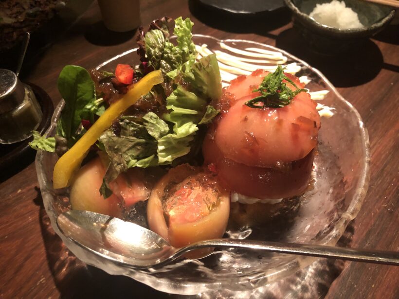 トマトにクリームチーズが挟まれたサラダ美味しかったなぁ。