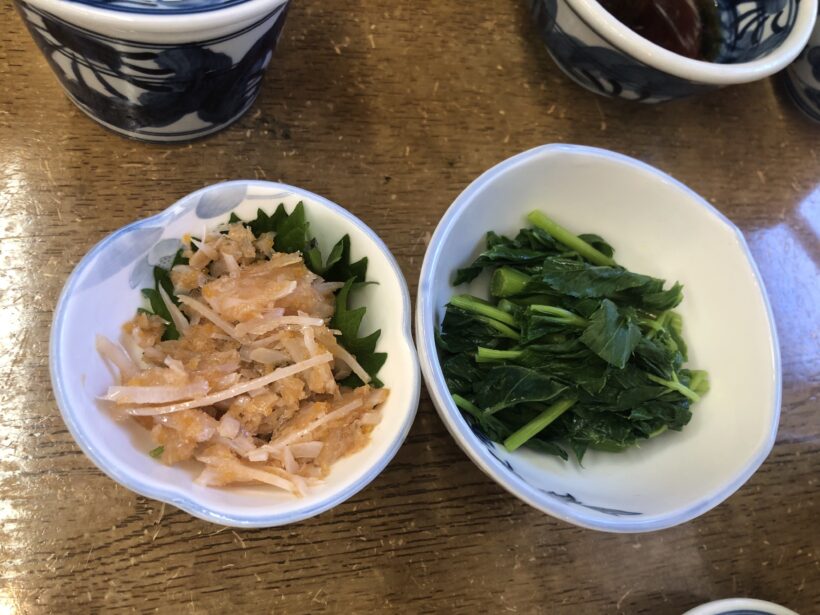 そして必ず梅水晶(軟骨の梅肉和え)とあしたばのおひたしも注文します。