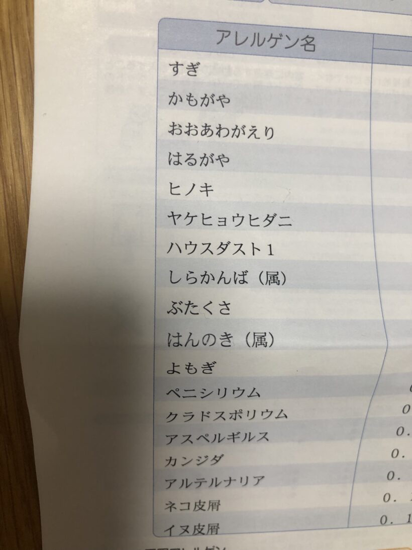 子供を耳鼻科に連れて行き、アレルゲン検査結果を渡されました。