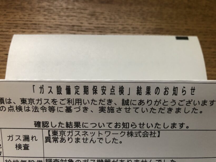 先日東京ガスの方がガス設備の定期点検に来ました。