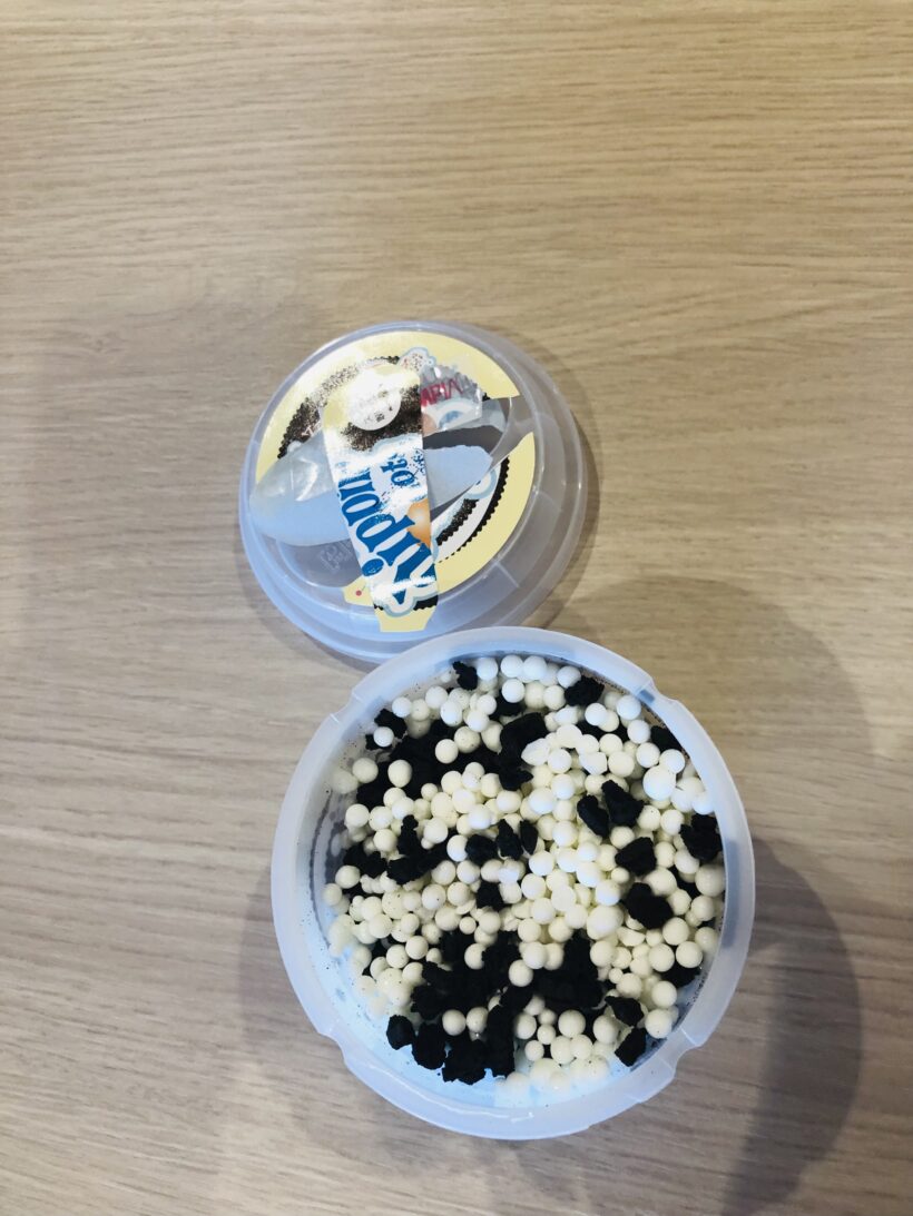 いつもレインボー味を買いますが、今回はクッキー&クリーム味を買ってました。味は14種類あるのかな。