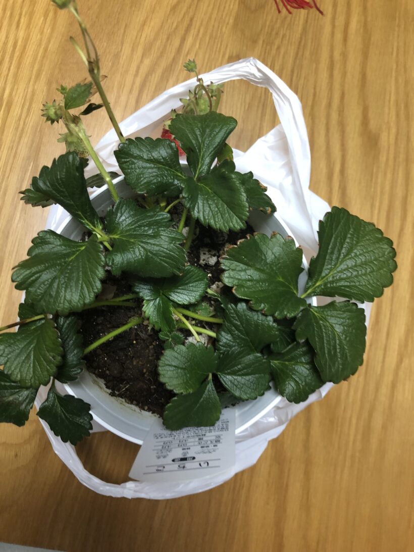 先日ホームセンターに行ったときにとちおとめの苗が売られていたので、娘が育てたいというので衝動買いしました。