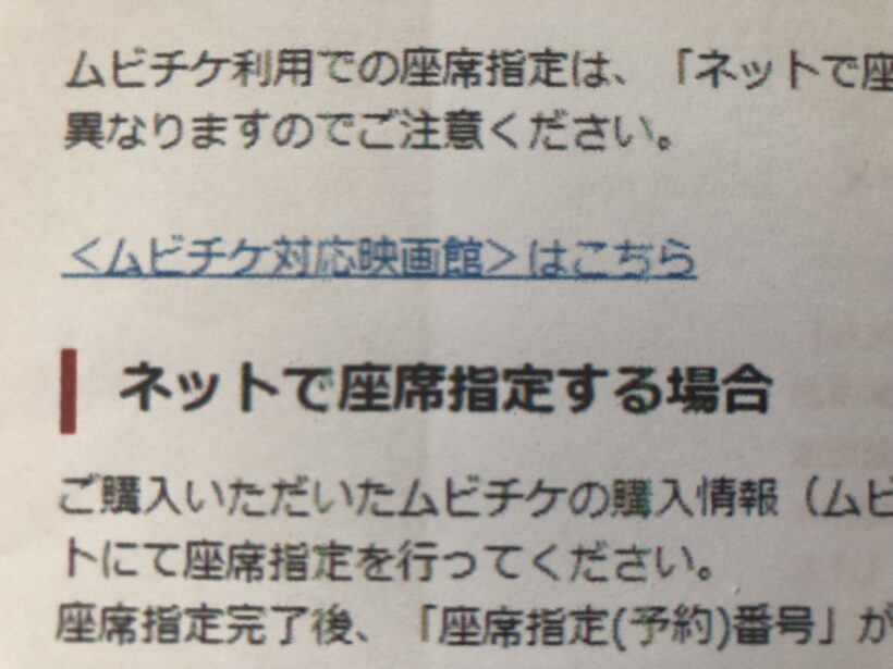 ちゃんとムビチケのご利用方法のなかにネットで座席指定する方法が紹介されていました。