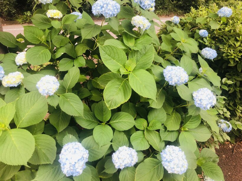 自然に咲いているあじさいもあれば、おうちの人が花壇で丁寧に育てたあじさいも見かけます。