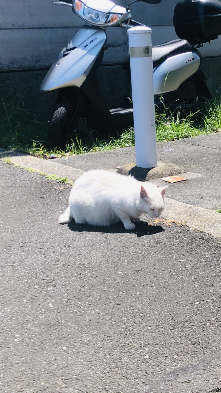 この白い猫は逃げませんでした。