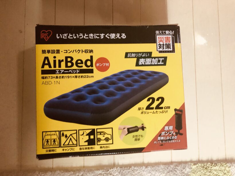 水とトイレが一番大事という話は前にしましたが、今回はAir Bed(エアーベッド)を購入しました。