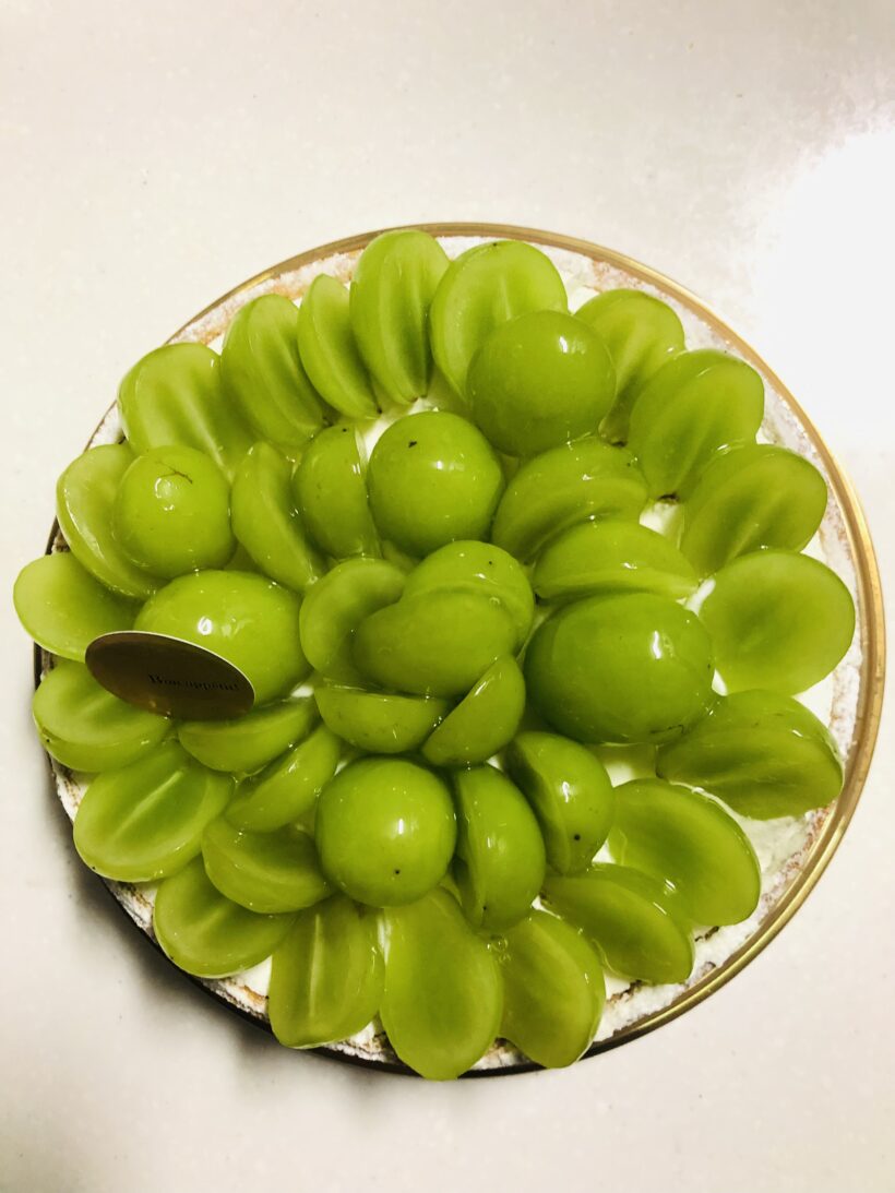 家族みんなが大好きなシャインマスカットとレアチーズの15cmのホールタルトです。