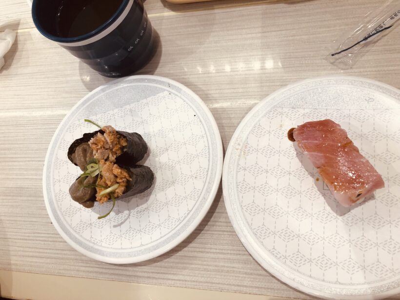近くて徒歩で行けることもあり、わざわざ遠くまで出かけて外食するより、手っ取り早い回転寿司を選択します。