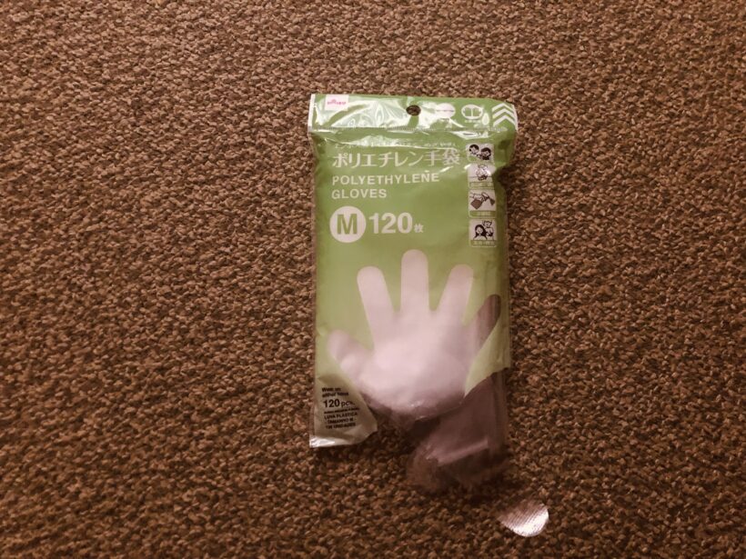 家では隔離生活で、隔離部屋から出るときはマスクはもちろん、ポリエチレン手袋を装着が義務付けられています(笑)