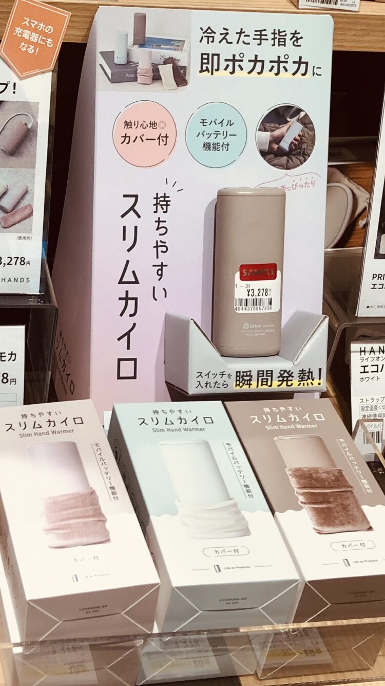 子供も握りやすいスリム型のカイロで、スマホの充電器にもなり、一石二鳥の商品です。