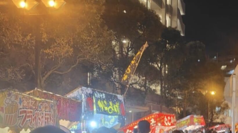 夜になると露店が立ち並ぶ通りは前に進めないほど混雑します。