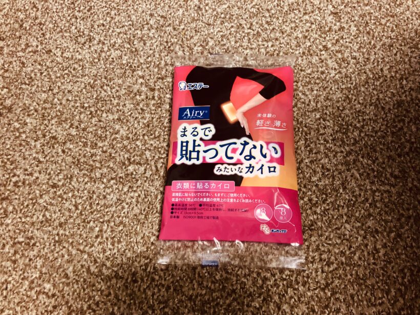 今回は使い捨ての「まるで貼ってないみたいなカイロ」という商品を初めて見つけました。