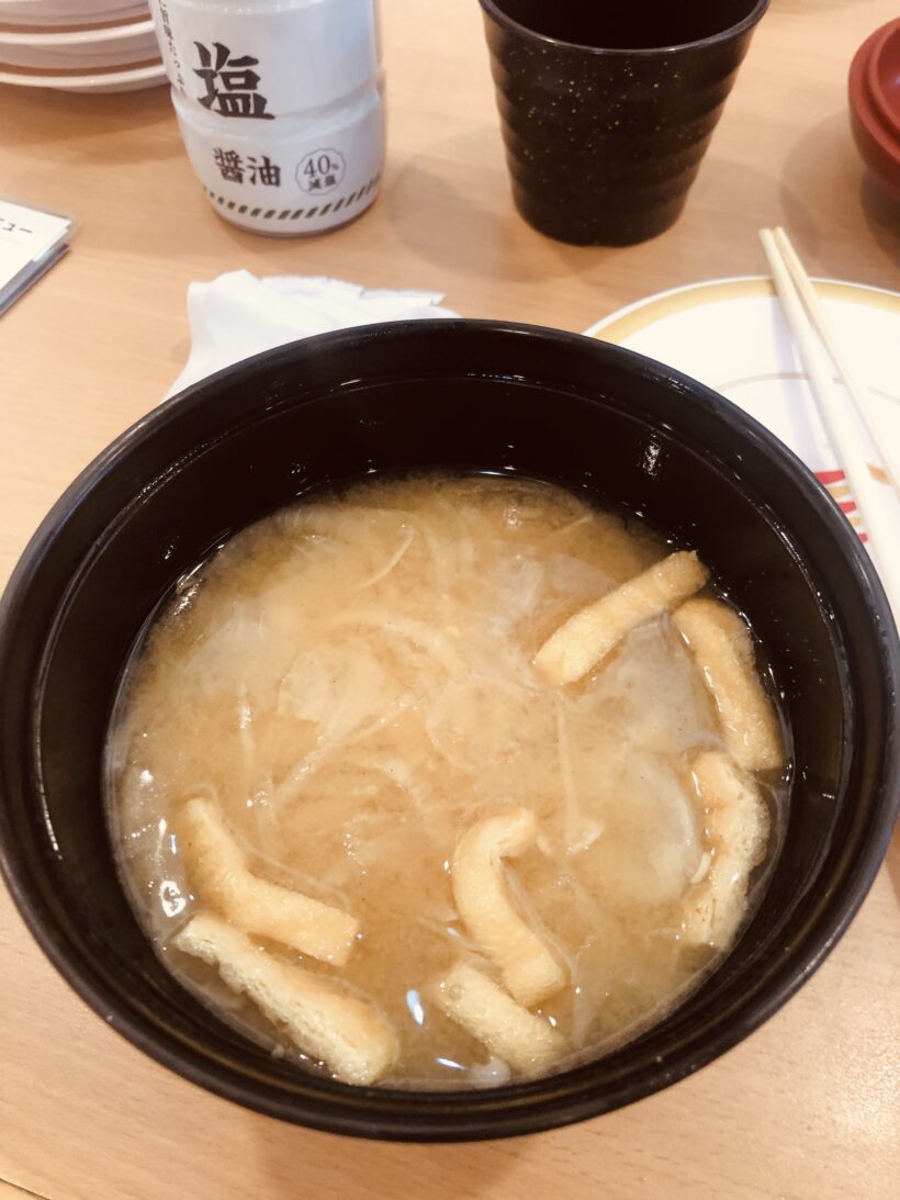 あおさの味噌汁を毎回注文していますが、今回は油揚げと玉ねぎの味噌汁を注文しました。