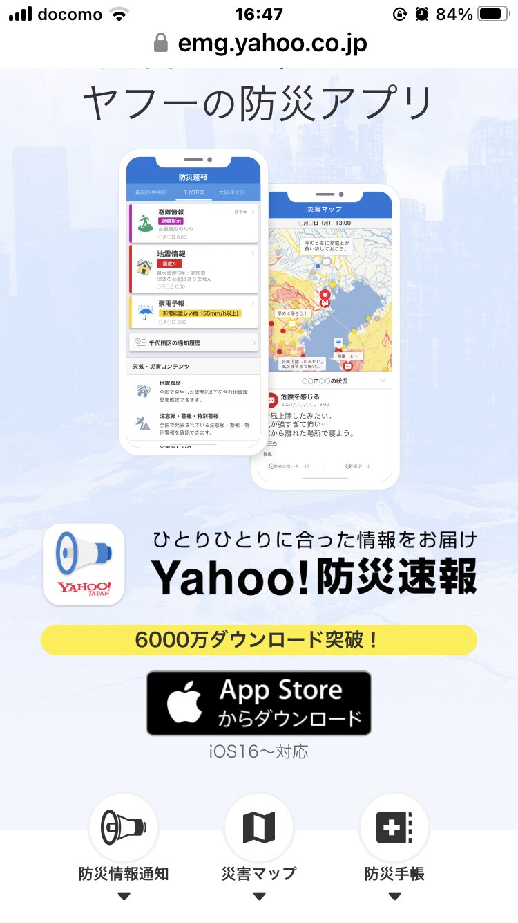 防災速報を入れてこまめにチェックすることをおすすめします。