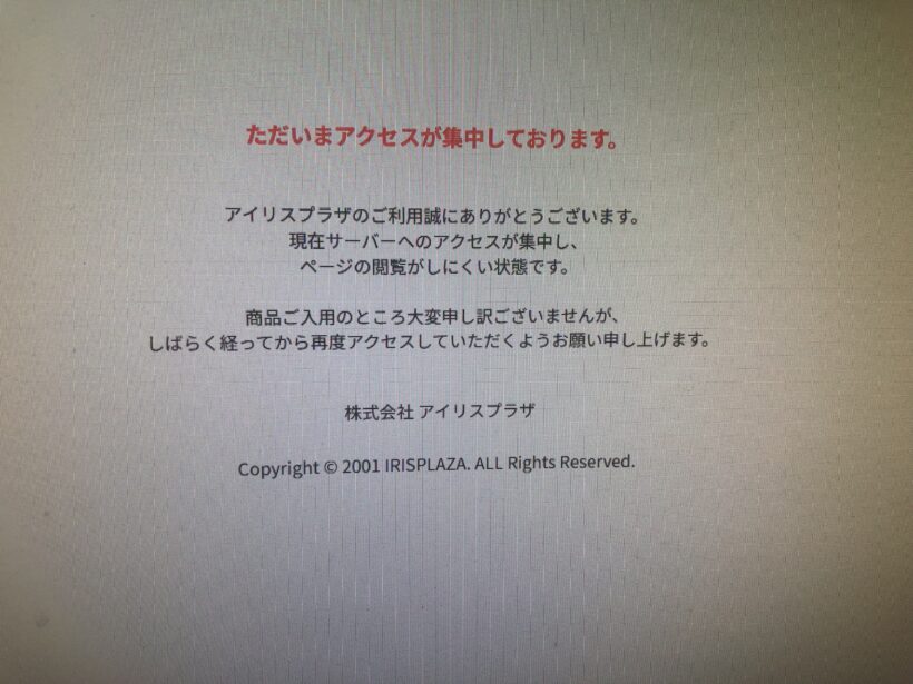 アイリスオーヤマでも13時からネット販売されましたが、アクセスが集中してまったくつながりませんでした。