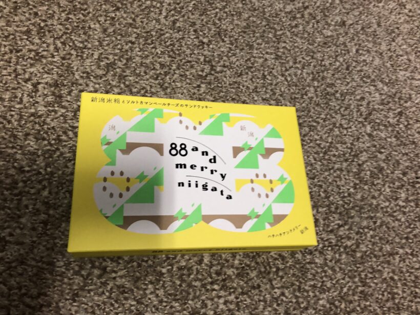 まずは越後川口サービスエリアで買ったハチハチアンドメリー新潟の新潟米粉とソルトカマンベールチーズのサンドクッキーと野菜生活ル・レクチェ味です。