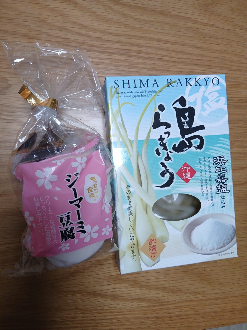 今回は島らっきょうとジーマーミ豆腐を買いました。
