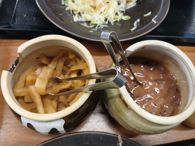 お店で食べると無料で「切り干し大根」と「塩辛」が食べられます。