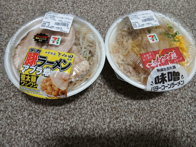 セブンイレブンでよく息子が買ってきて食べているラーメンで味噌コーンバターラーメンを初めて食べてみました。