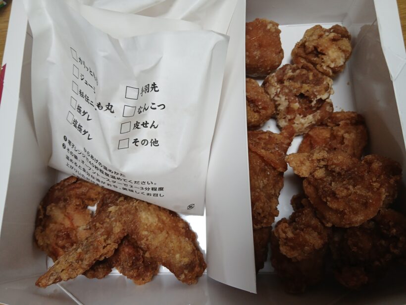 からやまのパーティセットはモモのからあげや手羽先やポテトフライが入ってて家族で食べるにはちょうど良い量でした。