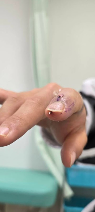 ただし、手元からの固定(包帯)は外れて、指先だけの包帯になりました。