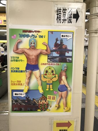 マスクは山手線カラーの緑色、パンツは京浜東北線カラーの青色ですね(笑)