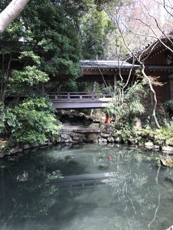 深大寺の本堂でまずは参拝します。深大寺境内では、新緑と所々に滝や湧き水があり癒されます。