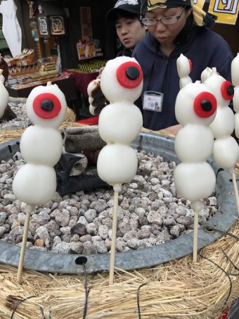 歩き疲れたら深大寺参道にある「鬼太郎茶屋」で一休み。饅頭やお団子、ソフトクリームなどなんでもあります。