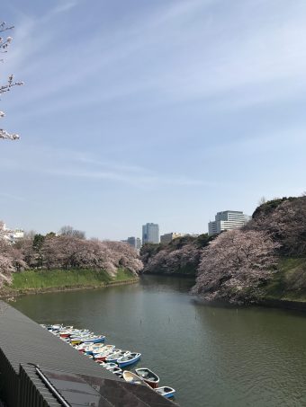 日中はボートや水面に映る桜の姿も美しいです。