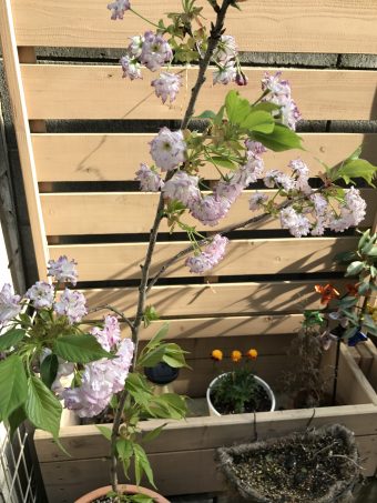 柿やりんごやぶどうなどの枝木に興味を持ちつつ、桜が家で咲いたら嬉しいなと思い八重桜を買ってきました。