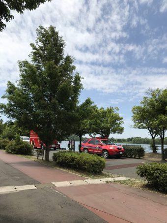 最初からその予定だったので、テントとレジャーシート、クーラーボックス、網、お魚入れ、サッカーボールなどを一式持っていざ公園へ。