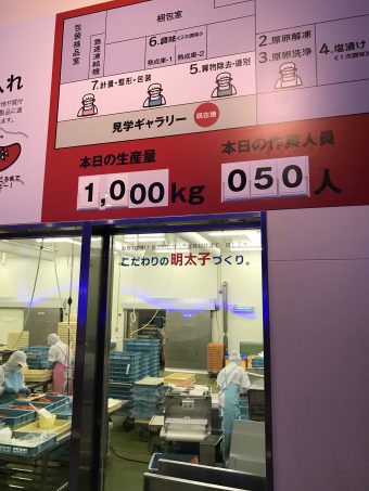 明太子がどのように作られているのかを無料で見学できます。15分もあればざっと見学できます。
