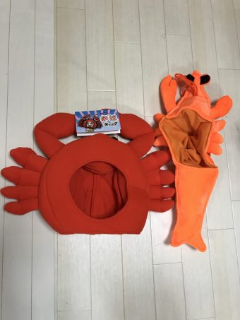 ケロポンズのCDとエビとカニのかぶり物まで買って張り切る嫁。