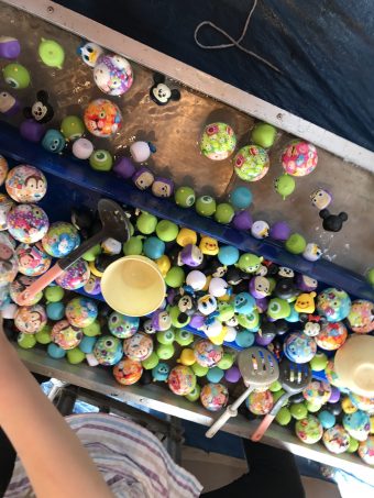娘はツムツム救い(1回500円)をやりました。おたまで大ボールと小さなおもちゃを二つ取れます。