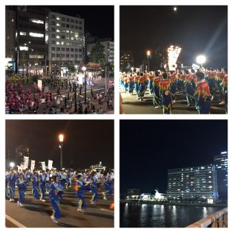 会場は新潟のシンボルである、萬代橋をメインに、繁華街の古町のメイン通りのあちこちで踊りの輪ができます。