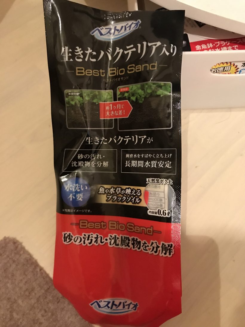 生きたバクテリア入りの砂や金魚が好む水草も買ってきました。